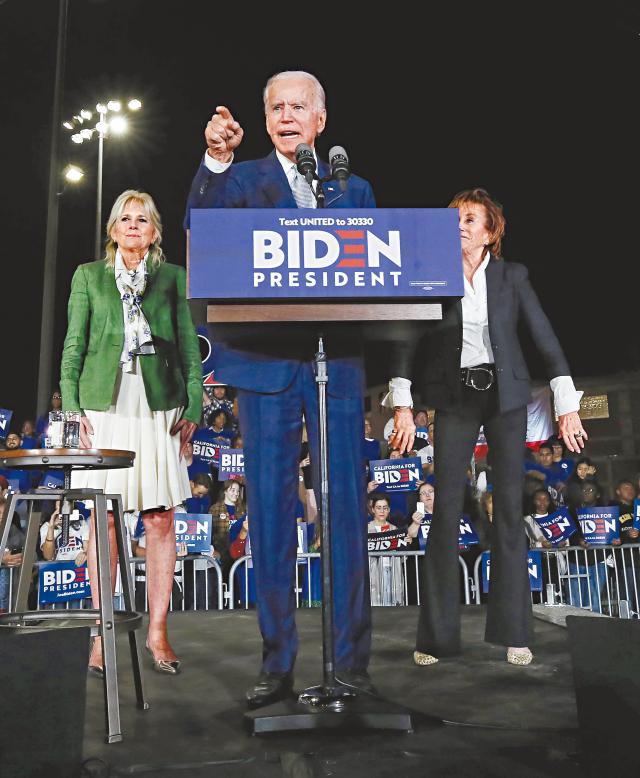 喜形於色的拜登前晚在加州洛杉磯集會發表勝利演說,借自命民主社會主義者桑德斯的「口頭禪」來發揮,指:「有些人在談革命。我們是發動了一場運動。」桑德斯則在老家佛蒙特州祝捷,抨擊拜登無法贏得大選:「搬出老一套政治是不能擊敗特朗普的。」他逐一數出自己與拜登在社福、貿易和軍事上的政見分歧,「這是一場理念對立之戰」。