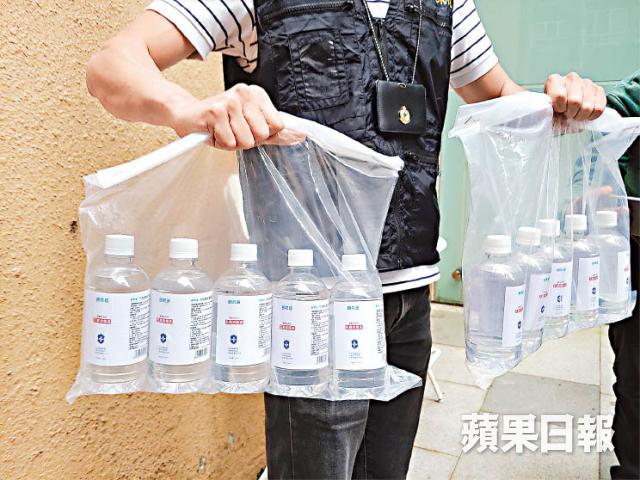 海關早前接報指粉嶺有藥房售賣有問題消毒酒精,遂派員到區內一間藥房購得名為「朗梵迪」的國產酒精。該消毒酒精的膠樽招紙印有簡體字,成份標示「乙醇含量75%」,並聲稱符合國家安全標準,每樽含量500毫升,售75元。人員把該款酒精送往化驗,本月2日報告顯示該酒精乙醇含量只有69%,每樽亦只有478毫升,更含8.2%甲醇,涉違反《商品說明條例》及《消費品安全條例》。