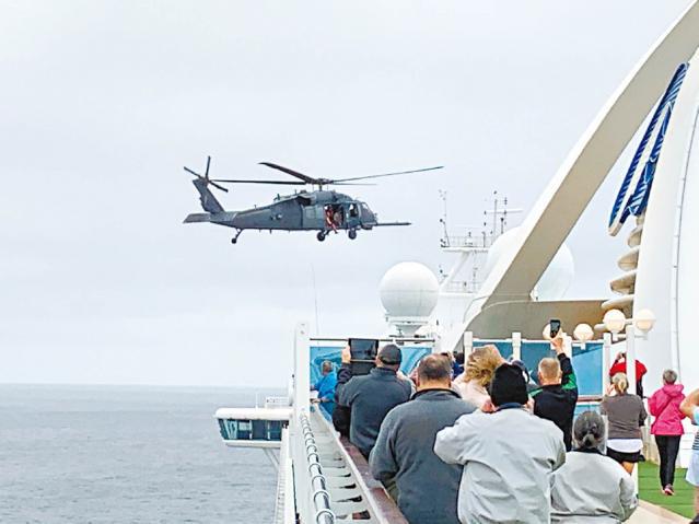 載有近3,500名遊客的至尊公主號繼續停泊於三藩市外海,由於早前船上有乘客染病死亡,當局將為出現病徵的35名乘客檢疫才放行,前日已派出直升機運送試劑到船上,稍後再將樣本送回岸上實驗室檢測。為防病毒在船上擴散,船公司早已關閉健身室、酒吧、賭場和商店等容易聚集人群的設施,並停止提供自助餐,又建議陌生人之間保持六步距離。到前日,遊客更被要求留在房間,直至另行通知,不少人大嘆無奈。