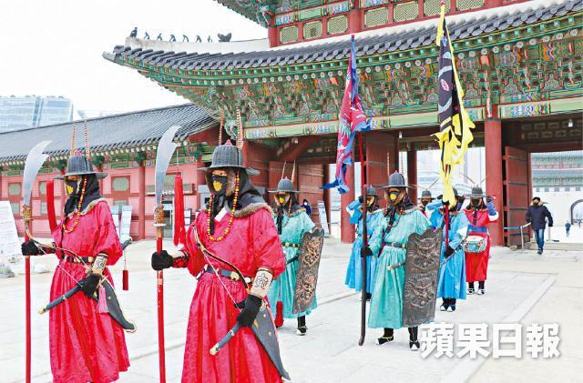 【本報訊】南韓武漢肺炎確診個案突破6,000宗。《蘋果》記者走訪首爾市內多個旅遊熱點,昔日繁華的旅遊區猶如空城,場面冷清,遊客熱點景福宮每日定期舉行的守門將換崗儀式亦受疫情影響,守門將都戴上口罩,與韓服格格不入。
