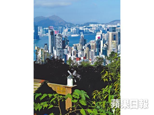 跨過鮮見車輛往來、多與跑步人士擦肩的寶雲道,繼續上行,茂密樹蔭間偶有空隙可眺望山下高樓。接近自然徑終點灣仔峽,右手邊是另一條小徑入口,木刻指示牌上,迷你風車下,有個特別的名字:「荷蘭徑」。 荷蘭徑原名「荷蘭灣徑」, 寶雲山北麓海拔二百米處的環腰山徑,通往馬己仙峽道配水庫,名字據說來自沿途可眺望的荷蘭灣景色, 昔日荷蘭灣,便是位於中環與下環(今灣仔)之間的海岸線。