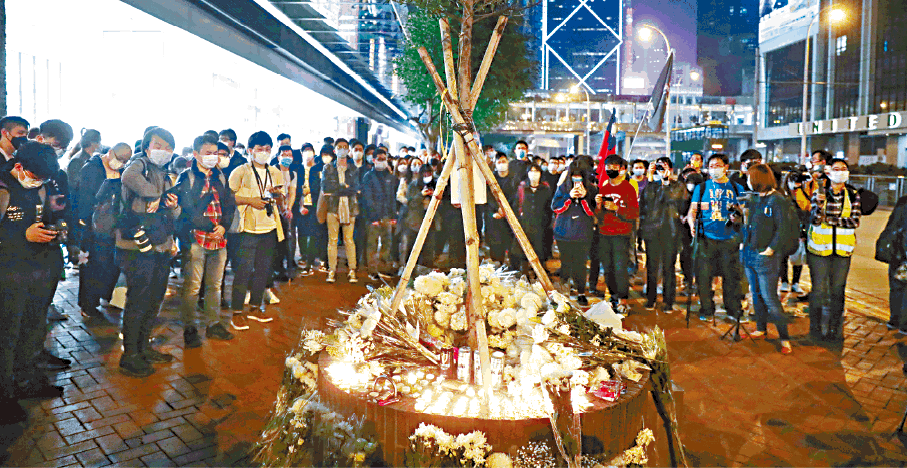 【本報訊】反送中運動怒火也許不再熾熱,但港人從沒忘記運動中殞落的抗爭者。去年6月15日,梁凌杰穿着背上寫有「林鄭殺港 黑警冷血」的黃色雨衣,站在金鐘太古廣場四樓平台,失足墮地後不治。