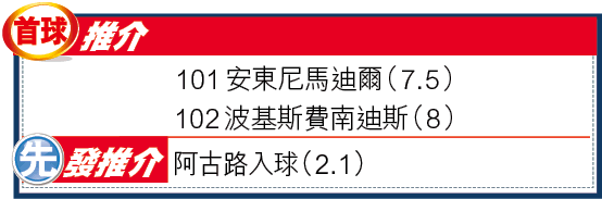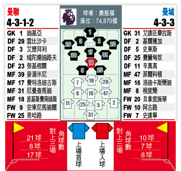 紅魔各項賽事九仗不敗,曼城則五連勝,包括剛在英足盃以1:0小勝錫周三晉級,但考慮到英超衞冕的機會微乎其微,加上上周中肩傷避戰的中場奇雲迪布尼,與馬古尼一樣未知能否上陣,進攻的流暢性或受影響;同時兩位前鋒阿古路及加比爾捷西斯幾乎都踢足全場,尤其傷癒不久的前者,體能較令人擔憂,半場領先的本錢不多。