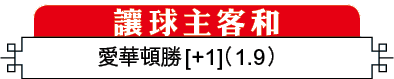 愛華頓自肥安上任後,演出非常硬淨,經過10場聯賽後不敗率高達80%,上仗對曼聯被VAR推翻絕殺入球,球隊上下谷到一肚氣,作客傷兵甚多的車路士有力再保不敗身,「讓球主客和」愛華頓[+1]宜取「客勝」。