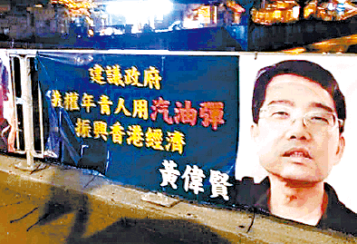 元朗區議員王百羽昨凌晨在Facebook發帖,透露李煒鋒在元朗見到有人懸掛橫額,抹黑當區兩名民主派議員黃偉賢及麥業成,對方被撞破後逃走,李一路追趕,期間遇襲。涉事三名男子懸掛的抹黑橫額寫有「成功爭取社區播毒」、「建議政府授權年輕人用汽油彈振興香港經濟」(圖),並分別配上黃偉賢、麥業成的相片。