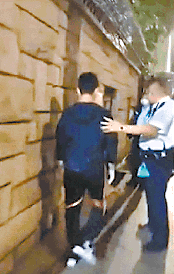 【本報訊】元朗區議員李煒鋒昨晚撞破三名男子懸掛抹黑元朗區議會主席黃偉賢和麥業成的橫額,一路追趕其中一人,其間對方向李施襲,拳打李的頭及嘴。李煒鋒窮追不捨,施襲男子一路逃到元朗警署,有軍裝警步出了解,男子大叫「我收錢做嘢咋嘛,有咩問題呀?」後,被另一名警員要求入內登記資料。李指,對於施襲男子選擇向警署方向逃跑感到疑惑。