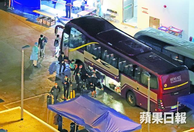 昨晚9時起,約100名警員分批乘坐十多輛大型旅遊巴或24座小巴抵達駿洋邨,其中多輛大型旅遊巴僅接載四至五名警員。車上所有人戴上口罩和隔行坐,抵達後帶同大大小小行李落車進入邨內,之後站在駿逸樓的地下,等候相關人員量度體溫及檢查文件。