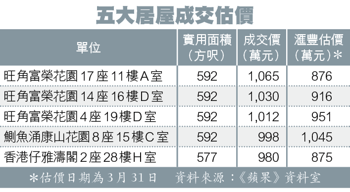 向來有「九龍居屋王」之稱的富榮花園,為全港盛產最多千萬居屋的屋苑,十大最貴居屋成交中,富榮花園已佔其四,當中更有三宗成交價過千萬元,其中一宗更只是兩個月前,以1,012萬元成交的4座中層D室,實用592方呎,但現時銀行網上估價已經下調至951萬元,比成交價低6%。