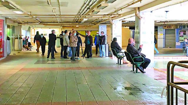 昨日所見,涉事棋盤枱凳已被人用黑膠袋笠好,外圍以膠帶圍封,防止再有人下棋,由於下雨加上該處是露天範圍,因此未有人逗留。不過,葵盛東邨內仍有長者在其他長凳架起小桌子及棋盤下棋,有人上前圍觀,一度有五人聚集,部份圍觀者沒戴口罩。其後有兩名管業處職員勸喻長者回家,別再聚集及戴好口罩,下午5時許有警員巡視,稱「只要你哋唔好聚集超過四個人就冇事!」