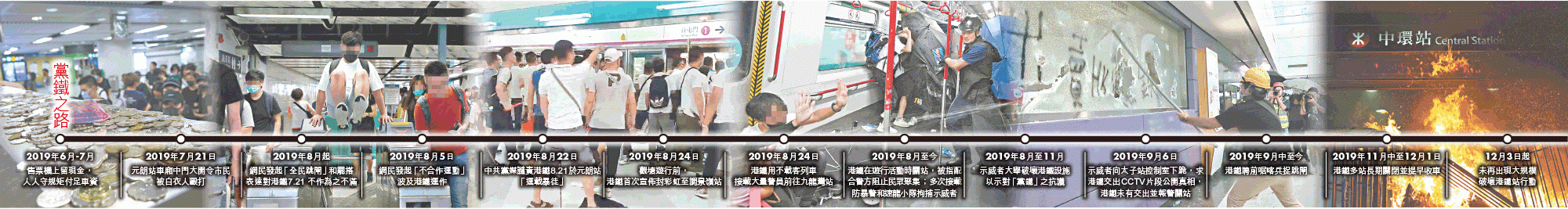 區選後街頭衝突退卻,港鐵12月客量一度重上1.2億人次,貼近反送中運動前水平。港鐵車務總監劉天成當時公佈,共147個鐵路站和輕鐵站遭破壞,涉及2,000部出入閘機及1,100塊玻璃幕牆。最後一次發生「裝修」港鐵事件,已是去年12月3日,至今近四個月,全面復修車站原來只有六個:欣澳、火炭、康城、錦上路、朗屏及太子。