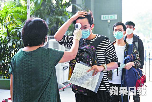 在荃灣區應考的夏同學昨佩戴N95口罩應試,他說雖然近日沒有新增武漢肺炎確診個案,但為求安心,聽從父母建議佩戴N95口罩。同場考生林同學更稱會「盡量唔去廁所」,除了因衞生情況,亦怕浪費時間,並帶備三個後備口罩、酒精搓手液及消毒濕紙巾應試。