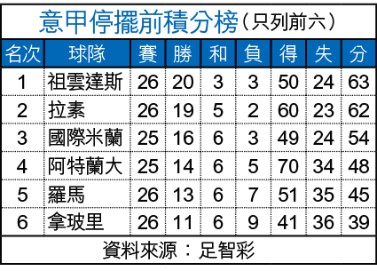 意甲重開有望,對於力爭結束祖雲達斯爭取九連霸的拉素而言,無疑是好消息。拉素在停擺前於積分榜僅落後記一分,2隊餘下尚有12場比賽要進行,爭逐相當激烈。拉素會長洛迪圖卻感到無奈,認為暫停重開令「藍鷹」爭標失去優勢,寧以一場決勝負的方式去與祖記爭冠軍。