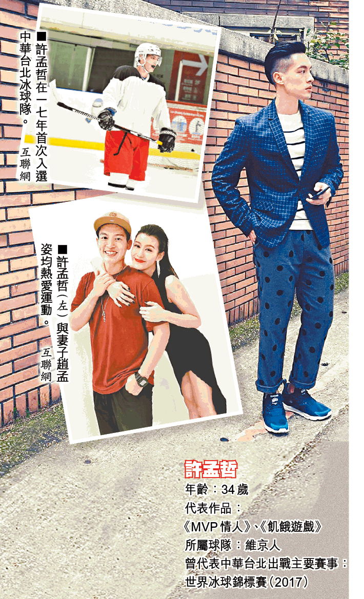 台灣綜藝節目《飢餓遊戲》主持人之一的許孟哲,除了是前台灣偶像團體5566的成員外,亦是一位冰上曲棍球手,成為藝人後才開始接觸冰球,經過10年苦練後更成為了中華台北的國手。許孟哲去年與模特兒兼藝人的趙孟姿結婚,成為了這位「林志玲師妹」的「MVP情人」。