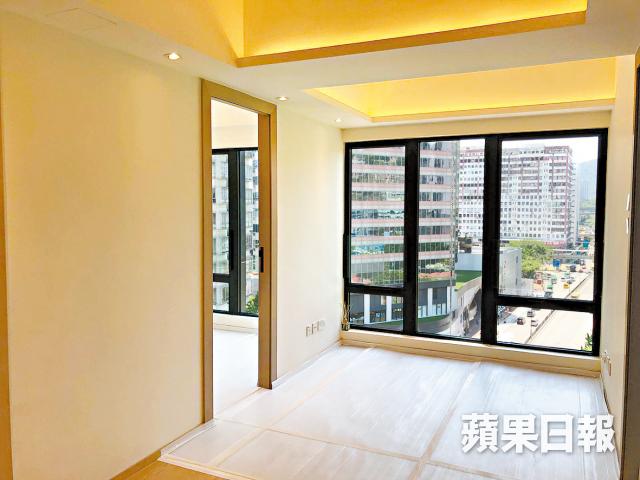 項目開放11樓B及D室交樓標準示範單位,D室實用404方呎,兩房間隔,大廳向球場方向,設落地大玻璃窗,中間有橫樑,分隔客飯廳。兩間睡房間隔方正,另設梗廚,附儲物室。另B室實用301方呎,一房間隔,望興芳路街景及樓景。