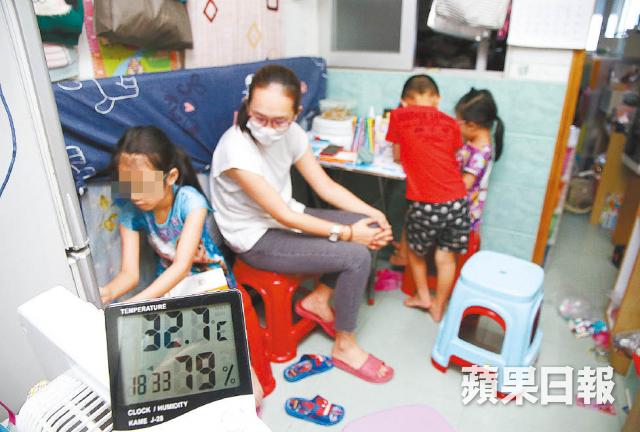 黎先生任職散工,平均月入6,000元,是家中經濟支柱,惟每月已用5,000元繳交租金,為省錢多數時間只開風扇驅暑,近日兩把風扇壞掉一把,黎太說眼見子女不停出汗,晚飯及睡覺前才捨得開一陣冷氣讓他們入睡,無奈子女半夜經常都會熱醒。黎太說,往年會帶子女到商場嘆冷氣,但疫情下都不敢帶他們外出。