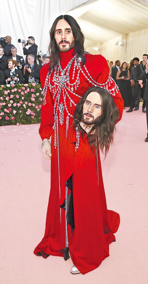Gucci這個人頭天橋look真的成為經典,謝勒力圖去年搵特技師做了自己個樣,捧住自己人頭去Met Gala。網民版本,sorry,雖然人頭只能自己畫,但誠意十足。