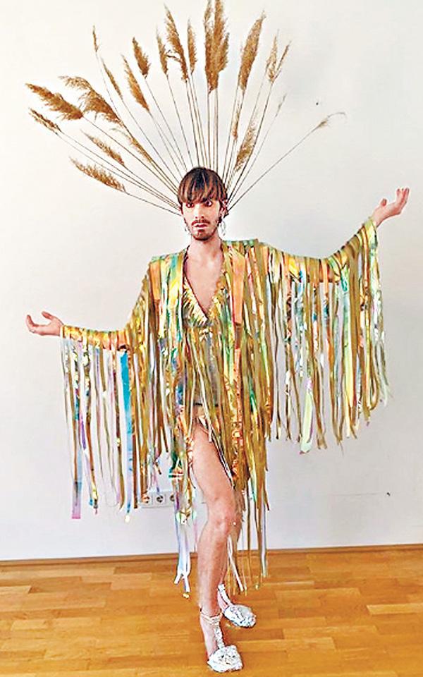 大會主題Camp,Celine以茱迪嘉蘭(Judy Garland)為靈感的流蘇造型,單單頭飾都重22磅。粉絲@Jakobvegh在家中用銀色反光紙條、禾稈草插頭,成功重現,連甫士、表情都抄到足。
