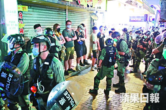 有抗爭者改在豉油街與花園街交界十字路口設雜物堵路,警方清場後,在亞皆老街衝前截查多人,共持胡椒噴霧戒備。
