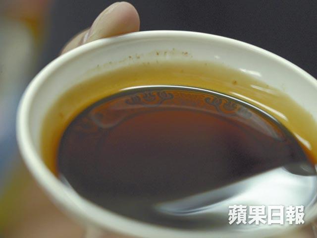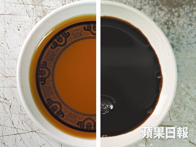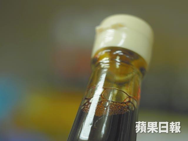 他即場以一支22元的頭抽級特級醬油及16元的甜豉油為例,同時搖一搖,頭抽起泡較多,亦較能維持起泡的情況,「甜豉油相對豉油含量會比較少,多一點雜質,例如糖份或其他添加的成份,故起泡的程度較小、消散得較快;相反豉油含量較高的頭抽可能放4、5小時都會有泡。」