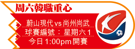 韓職今周才開鑼,但尚州尚武已經收到不幸消息,因為亞洲足協的要求下,韓職球隊需與球員簽訂職業合約,但因為尚武專為服兵役的球員而設,不合職業聯賽資格下,今季不論成績如何也需降班。事實上尚武一向只是球員短暫落腳點,過去多列聯賽中下游,上季最終排名第七,球員流動性大,也欠歸屬感,所以縱使整體球員名氣不錯,也不宜高估。無疑今季就有全北汽車射手文善敏及後衞權敬原加盟,裴栽釪及李明載今仗亦倒戈蔚山,但新兵融入需時,球員也易崩潰,上季九場作客敗仗中,就有5場淨敗2球或以上,今仗也難樂觀。