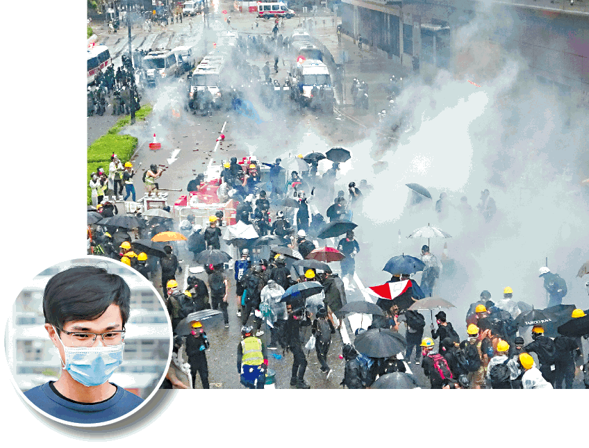 【本報訊】去年8月25日荃葵青遊行後多處有衝突,現場拍攝衝突場面的中文大學男生,被指推跌防暴警察被控襲警,案件昨日續審。庭上播放被告以手機拍攝的片段,被告被捕後手機仍在錄影,錄下他遭押上警車後的對話,警長當時聲稱:「𠵱家話你非法集結,唔係話你襲警呀!」惟警長在庭上否認誤導被告。