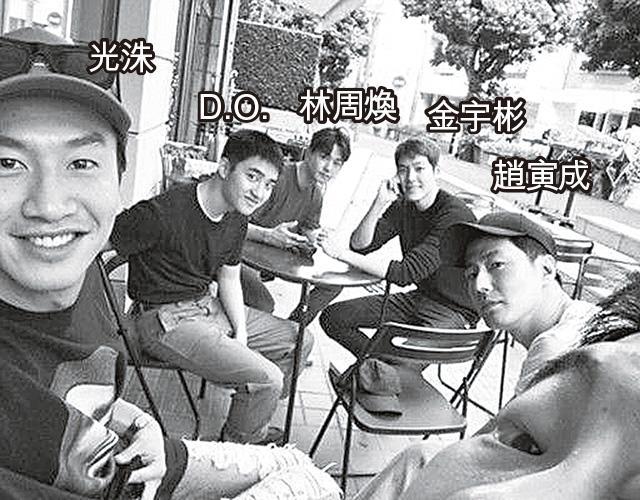 另一個由男神趙寅成領軍的小圈子就打破年齡界限,集合了多位人氣男演員,電影《霜花店》的拍檔宋仲基、合演過劇集《沒關係,是愛情啊》的李光洙及EXO成員D.O.、金宇彬等。這個小圈子特別喜歡一起去旅行放鬆,宋仲基2015年結束兵役後第一時間就孖趙寅成、李光洙一起去泰國度假。不過雙宋大婚當日,就未見趙寅成的身影,之後宋仲基缺席兄弟聚會,似乎感情淡了已脫群。至於其他成員多次在日本街頭被拍到有講有笑,金宇彬曾透露最愛錫弟弟D.O.,還大讚對方在旅行時會負責為大家預訂機票酒店,兄弟情令人羨慕。