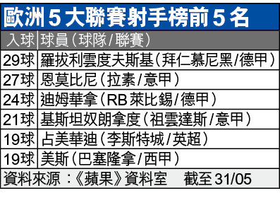 【綜合德國外電】上周六德甲尾場,一哥拜仁慕尼黑主場迎戰杜塞爾多夫,最終拜仁憑羅拔利雲度夫斯基梅開二度、班捷文柏華特及艾方素戴維斯入球,再加上對手的烏龍球,以5:0輕鬆取勝。賽後拜仁在積分榜以29戰得67分領放,奪冠形勢大好。