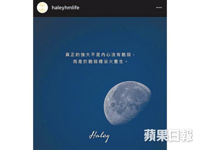 Haley是情緒病過來人,她從中學起便出現抑鬱症狀:常哭、有輕生念頭、自我形象低落。近年正視情緒問題,便報讀美國催眠治療師課程。助人自助,她走出死蔭幽谷後,更希望拉同路人一把。