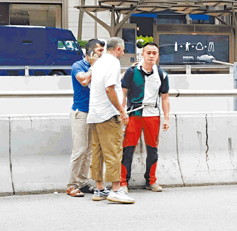 目擊者陳先生指,當時途經目睹一名紅褲男子欲跨欄跳落行車隧道,隨即遭一名南亞漢追上阻止。紅褲男子腰纏狗繩,南亞漢追上後即抓住繩頭不放,再用手機報警。