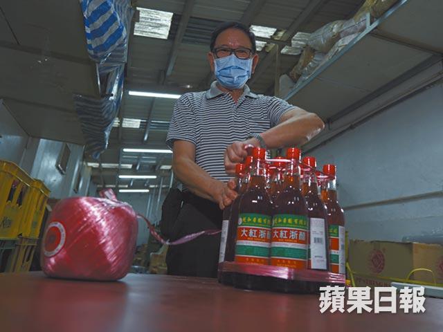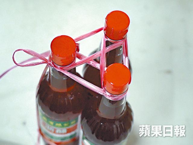 威哥今年已經七十歲,十多年前來到古洞的醬園做管理。客人訂貨大多不是整數,兩支麻油、五支生抽、十一支陳醋,大小不一的樽放紙皮箱送貨,肯定損傷慘重,若用繩紮實,數貨容易也避免損壞。以為每日紮幾十、幾百斤的鹽油醬醋,一定手臂夠力,但原來紮樽之力,在乎均勻,重點像耍太極,動作細,用陰力把繩慢慢拉實,圈出的「魔法陣」才靚仔實淨。「不要一下子用力,太大力,瓶身會互相擠壓,會壓爆樽,有時手都割傷。」問及有否試過紮爆樽,威哥立即滔滔不絕:「有,但好少。浪費了貨物當然慘,最慘是要抹地,白醋還好但好大陣味,豉油好難抹呀……」