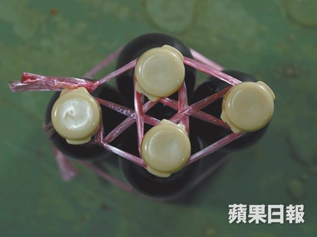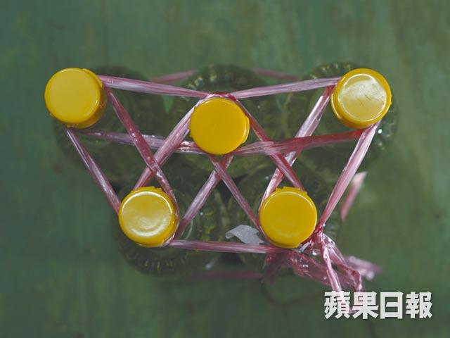 兩支樽紮不出三角形怎辦?就在中間打結,減少碰撞空間。