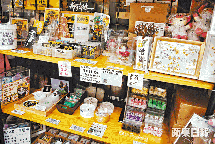 香港商業掛帥,信奉大量生產,誰有閒暇幹那手作仔玩意?抗爭運動不但掀起政治風雲,人文氣息也歸位,店前寄賣黃圈手工藝品,她說:「我覺得這樣比較好,太商業的東西反而不好,都是一些copy的東西,商場都是統一的東西,這些比較有特色。」