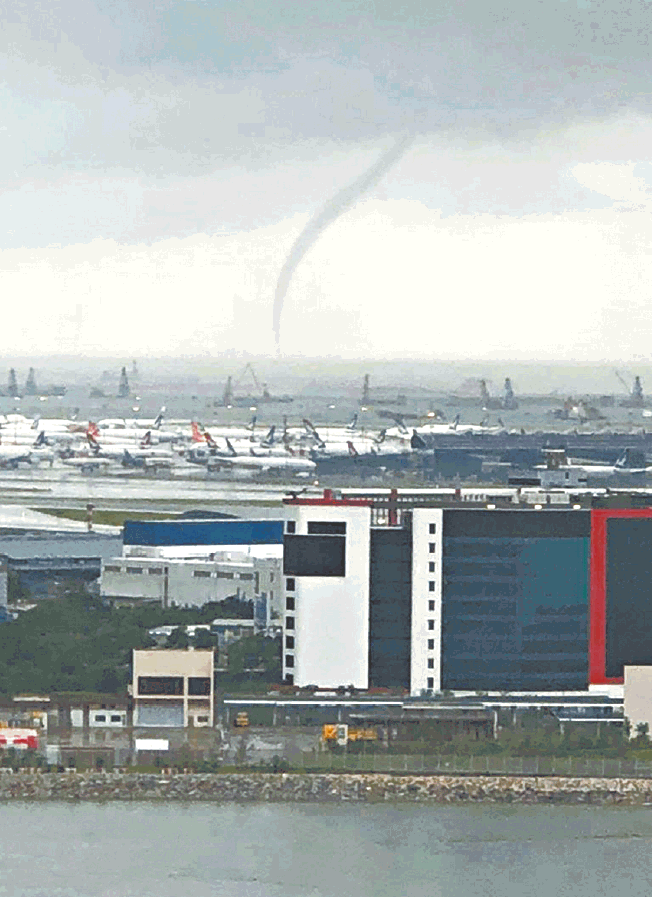 昨早約10時,赤鱲角機場第三跑道對開出現水龍捲,住東涌東環的市民李小姐講述,當時聽到行雷及見到一道閃電後,乍見一條水龍捲出現在對開海面,「維持咗30秒至一分鐘,唔係好郁,之後就散咗」。她說當時有飛機在跑道上準備起飛,「以前都有見過,年年都有,有暴雨就有」。