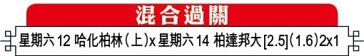 哈化柏林周六於德甲主場迎戰法蘭克福,哈化柏林正值主場兩連勝,對賽往績又佔優,加上法蘭克福周中於德盃剛與拜仁激戰後落敗,球員或現疲態,哈化讓平/半撐上盤。(球賽編號:星期六12;now672及有線653台今日9:30pm直播)