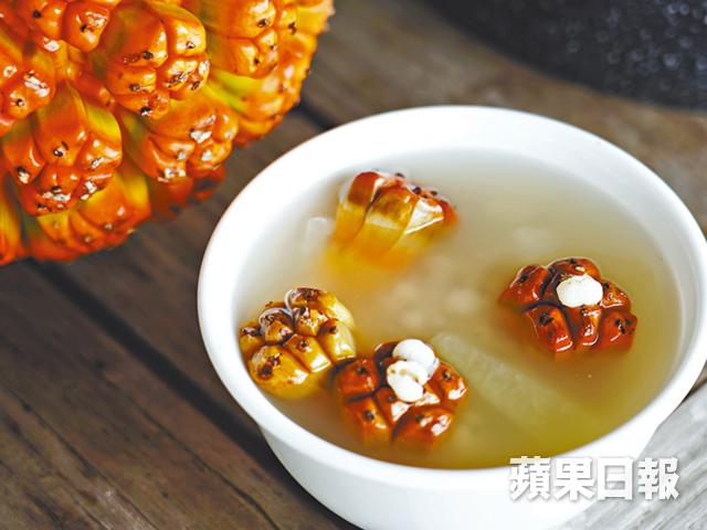 海菠蘿出現在浪不大的紅樹林岸邊,外海、太大浪的地方看不到,通常掛在高高的樹上,採摘時要戴手套,以防被莖部的倒刺刮損。David利用小刀割下一個海菠蘿,嗅着嗅着笑說:「這個沒有香味,整個很硬,都不知如何着手煮,外形好像病毒。剝下一粒品嚐,雖然比較硬,但很清甜,有些像粟米的味道。」Nicoles說:「不過很奇怪,它吃下去完全沒有鹹水味,可以抵抗到鹹水,長在海裏,但味道不鹹。」水上人通常會逐粒剝開,用生熟薏米和糖冬瓜煲糖水。「我先生通常出完海,都會飲海菠蘿,飲完感覺清涼得多。因為可以清熱解毒,如果體質怕涼,就不太適宜。」要找到海菠蘿,除出海自己採摘,亦可以到西貢果汁店碰碰運氣,有不少現成煲好的露兜水,味道似竹蔗茅根,記者飲過,很解渴。