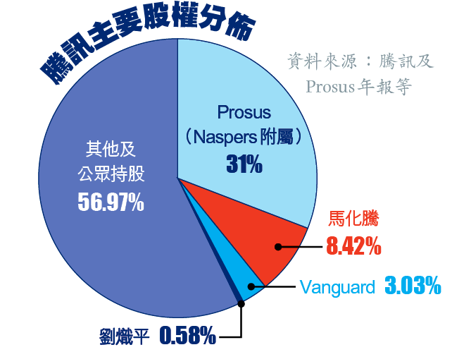 馬化騰上周二(9日)至周五(12日)於場內減持964.78萬股,持股比例由8.52%輕微下跌至8.42%。