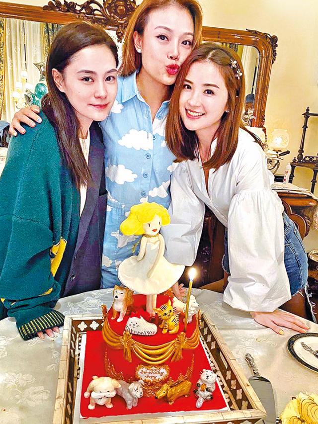 鍾欣潼(阿嬌)上月爆出跟「醫界王陽明」賴弘國離婚,結束一年多的婚姻,至今她仍未正式公開露面。昨日是阿嬌好姊妹容祖兒40歲生日,經理人霍汶希(Mani)在Ig貼出一張阿嬌孖蔡卓妍(阿Sa)跟祖兒慶祝的合照,Mani留言:「容祖祖,老母祝你生日快樂,希望你鍾意呢個surprise,我哋全部都好愛你,容祖兒,生日快樂!」不過網民重點皆落在阿嬌身上,只見她化上淡妝,穿上黑色外套下側身站在祖兒身邊,「面尖尖」的阿嬌明顯消瘦不少。