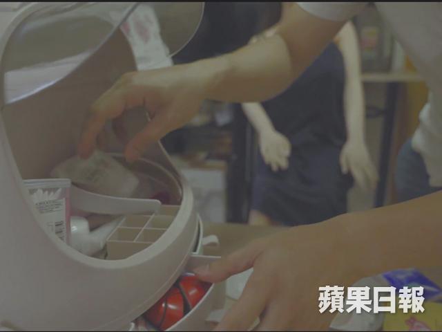 「我原本只打算買一隻手辦公仔,想不到要做這麼多護理工夫。」謝天榮笑笑地說,因為娃娃精緻但脆弱,所以要定時保養修護,他給我們展示整個護理過程,由一開始用布擦拭,再用膠紙黏走灰塵,最後幫皮膚打粉才完成。護理完畢後,他要把娃娃抬到床鋪,見他先是紮好馬步,把手扶在娃娃的腰間和腿關節,再一鼓作氣扛到床上。「娃娃有三十公斤重,它完全不會遷就人,所以抱起來很辛苦。」他的額角已冒汗。