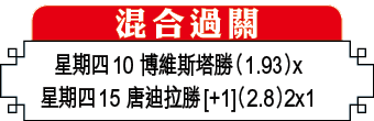 同日博維斯塔主場鬥塞圖巴爾,博維斯塔上仗一球小勝布拉加重回勝軌,加上主場對塞圖巴爾卻份外醒神,近四次近戰全勝並一球不失,今仗不妨直取1.93倍主W。