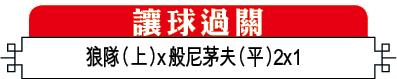 聯賽停擺前的狼隊暫在積分榜第七位,落後第4名的車路士5分,依然有機會可以闖入前四取得下季歐聯資格。復賽後的狼隊,在前線上繼續有魯爾占美尼斯、艾達馬查奧爾及迪亞高祖達三大主力合作攻堅,這3位鋒線球員今季已為狼隊貢獻了23個聯賽入球,是不可缺少的球員,加上後備席上有一月加盟的新兵普丹斯,攻力絕不成問題。對手「槌仔幫」韋斯咸停擺前狀態不佳,在主場面對白禮頓及愛華頓也要失分,今仗面對實力屬於中上游的狼隊,恐怕難搶分。