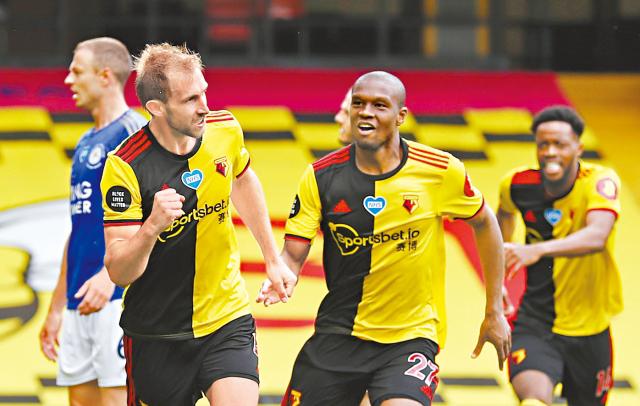 上周六英超頭場,三哥李斯特城作客屈福特。比賽大半場時間戰情一直膠着,但完場前掀起高潮,先有李城左閘芝維爾一記世界波遠射得手打開紀錄。但三分鐘後,主隊一次角球攻勢,中堅奇治戴臣(左二)把握機會門前側身倒掛射入追平1:1,帶領球隊成功搶到護得寶貴的一分。