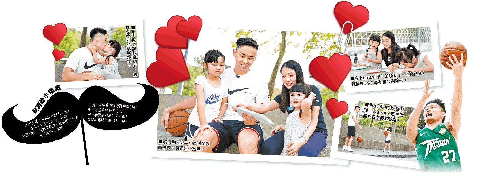 打開阿懃的社交媒體,除了跟籃球相關的帖文,就只有家人的照片,最近1、2年也不時看到他分享跟長女童童打籃球的影片。不過對阿懃來說,要跟他人分享家庭生活並非易事,只因他在18歲已為人父,當時不只有經濟負擔,心理上也承受很大壓力,「18歲便當爸爸在香港很罕見。籃球圈子很小,當時會擔心別人質疑我,認為我這麼年輕當爸爸,還有沒有餘力打球。我會胡思亂想,幸好太太開解我,說這並非壞事,被人知道也沒有甚麼大不了。」