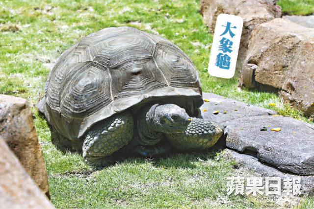 兩隻亞達伯拉象龜則為「大妹」和「細妹」,現年約15歲。亞達伯拉象龜是全球第二大陸龜,平均壽命100歲,以蔬菜生果為主食。