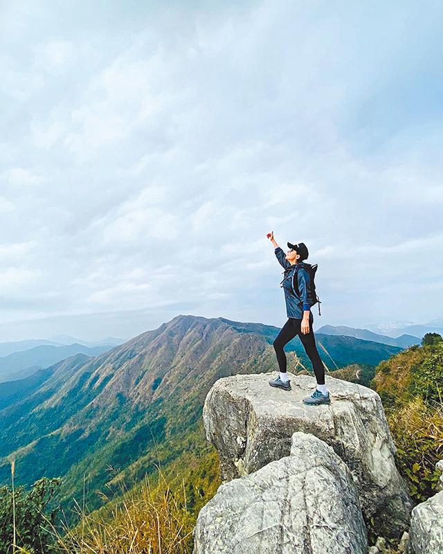 李施嬅近年熱愛行山,日前更挑戰香港難度最高的山蚺蛇尖,坦言中途曾有點中暑、頭暈及腳軟,不過她說上到山頂,是個世外桃源,更做起瑜伽吸一吸氧氣。