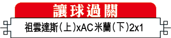 祖記周中作客3:1輕取熱拿亞,復季後在意甲累積三連勝,目前四分領先次席的拉素。C朗上場轟入時速達105公里的遠射,連同前2場比賽都入12碼及交出助攻,狀態回復得七七八八,加上鋒線拍檔保羅戴巴拿也連續三仗有進賬,攻力不成疑問。
