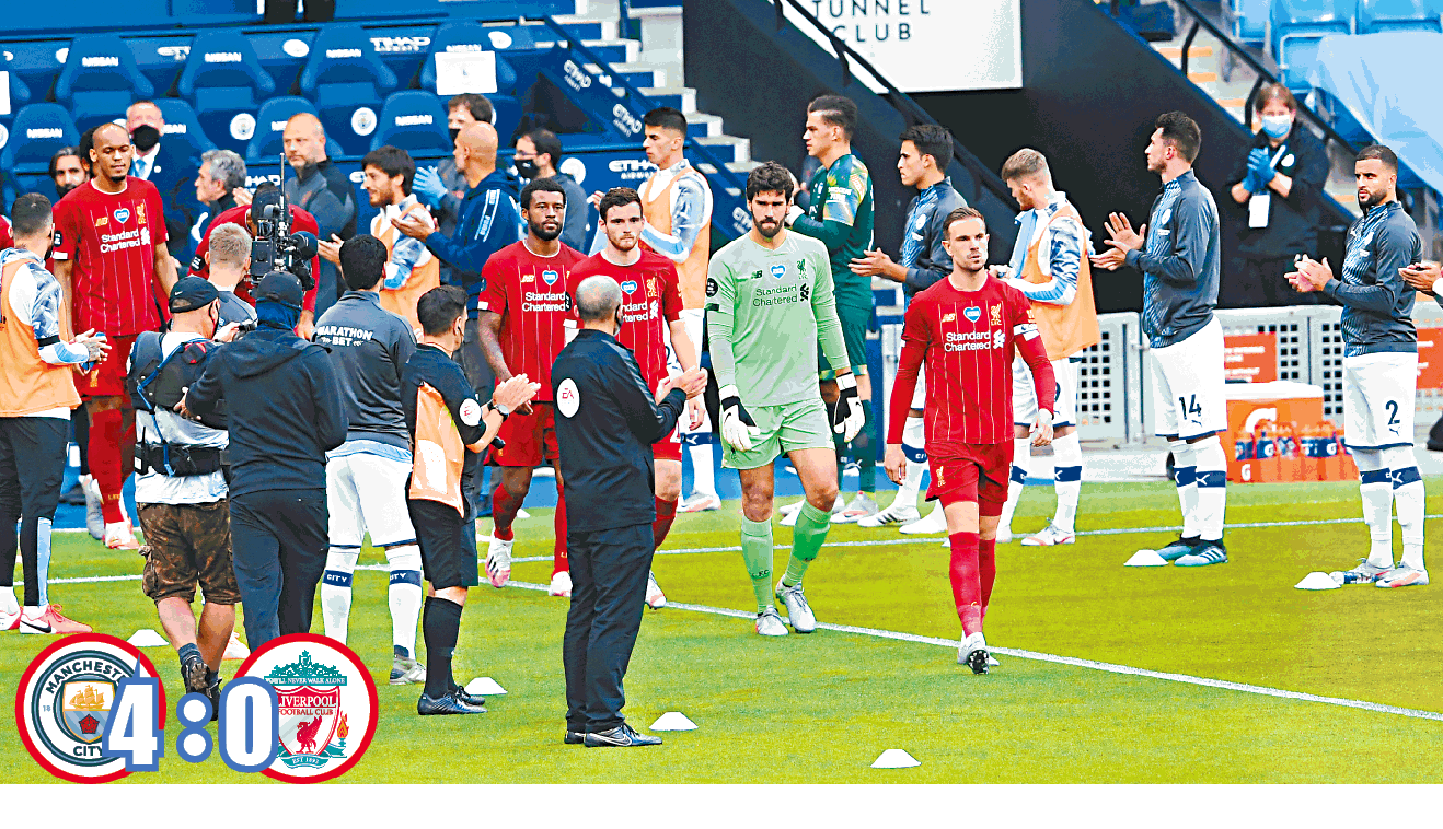 利物浦捧完英超冠軍即「腳軟」,周四首次在封王後返球場作賽,怎料作客遭最強敵人曼城大炒4:0,吞下今季英超第二場敗仗。輿論一致認為紅軍仍沉醉在30年來首奪聯賽錦標的美夢中,有所鬆懈而招致大敗,包括「藍月」領隊哥迪奧拿也暗諷對手賽前「飲得太多」,使紅軍主帥高普有點「發老脾」,反擊球隊沒被奪冠沖昏頭腦。