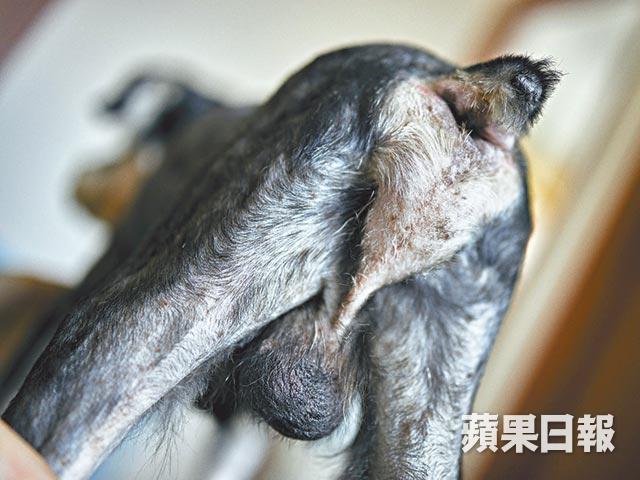 除牛蜱熱,廸廸可謂百病纏身,「牠睾丸特別大,大得跟拉布拉多的睾丸差不多,屁股還有塊突起來的肉,按壓時牠會閃避,感覺很痛似的。」獸醫觸診時發現睾丸有硬塊,照X光和超聲波後證實輸精管和前列腺都腫了,驗尿報告亦確診牠患上尿道炎。「當知道牠出身自繁殖場後,獸醫覺得很合理,因為很多繁殖場的狗也有這些毛病,正常來說無論性事多頻繁,睾丸也不會大得這麼厲害,估計牠被餵春藥餵成這樣。」