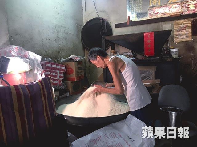 「以前那些人要貨多一點,每次至少叫20、30斤,甚至100斤(約60公斤)。最初送貨,我連單車都踩不動,都是頂硬上,以前很多大廈都冇電梯,最記得送去花園街,要將藍線包(昔日袋身有粗藍線的麻包袋)的168斤(約102公斤)白米搬上2樓,冇人幫手,要自己起膊搬上去。每逢過年都要送去8樓無電梯的大廈,那戶每次會買150斤米加兩罐火水,起碼要走三轉,以前年輕時不會理,有錢賺便賺。由麻包袋轉了現在的尼龍袋,因為袋較滑身,不像以前般容易搬動。」雜貨舖賣的米和超市不同,通常會將新舊米混合。「新米較為黏身軟熟,若只煮新米,整碗飯就會太濕,通常我會混些上一季的舊米,口感就剛好。我們不用古靈精怪的米,所以都有班熟客捧場。」