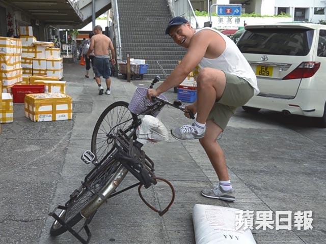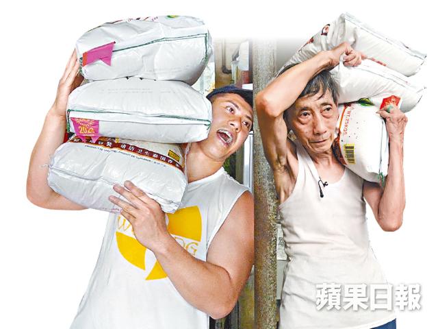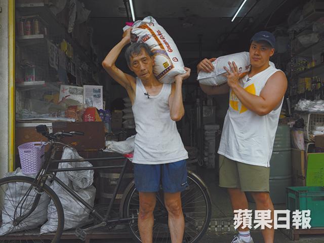 抬米絕不簡單,我們就找來90後大隻仔去實試。體重約200磅的李振宗,曾奪得多個腕力公開賽冠軍,臂力驚人,更創辦全港唯一拗手瓜協會,拗遍天下無敵手。第一關就看看雙方的膊頭抬到幾多包米,王德鑑輕輕鬆鬆就抬到三包、共75公斤(約165磅)的米,還可以行到數步;阿宗抬到第三包米時,維持不夠10秒便頂不住。「到第三包時已經有企不穩的感覺。我平日舉重,大概舉到70公斤左右,這三袋米加在一起剛好75公斤。如果平時沒有鍛煉,在這個重量下,用力不平衡,便會側在一邊,很容易閃到腰。」第二關實試踩單車送貨,原本想挑戰送兩包米的阿宗,連起步都有困難,最後只能夠實試一包米。「以前自己踏單車,人平衡便可以,但加多包米時,發覺要顧及平衡時,就像我屁股大了很多,平衡不到。」踩了不到50呎,包米更跌在地上,宣告失敗。最後一關是行樓梯送貨,今次挑戰是抬一包25公斤白米走上5層樓梯,阿宗終於應付到,「但如果我每日要搬十多包米,行樓梯數十次,我覺得捱不到太長時間。這個工作體力勞動很大,我擔心自己到某個年紀,再沒有魄力做,像鑑哥堅持到70多歲,實在很厲害,很佩服他。」