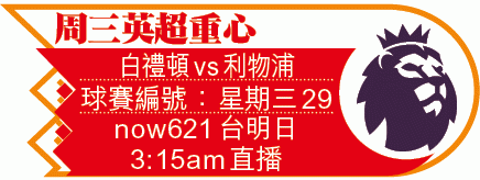 白禮頓在聯賽重開後的表現相當對辦,對上四場聯賽只曾在主場不敵曼聯。上場作客同需搶分護級的諾域治,在全場受壓下也可以保住一球的勝局,距離成功護級又邁進一步。雖然白禮頓復賽後只輸一場,但是4仗只攻入3球,以馬奧比以及艾朗干洛尼為首的鋒線欠穩定,面對紅軍的穩固防線難有甜頭。但白禮頓今季在主場面對強隊的戰績不錯,曾令熱刺、阿仙奴及車路士失分,而紅軍在過去五場作客賽事中,未嘗一勝之餘更未入一球,今仗開「細」可期。